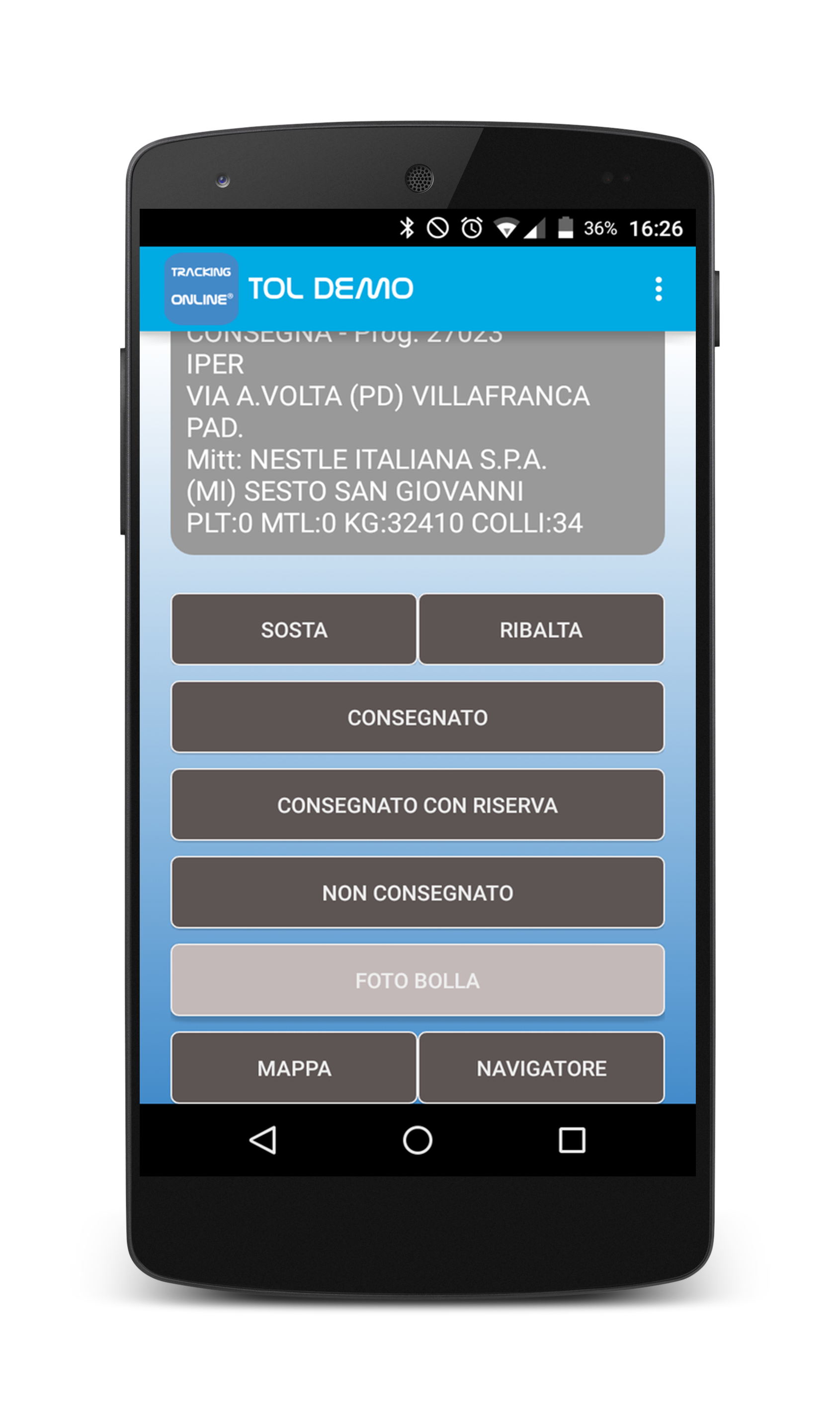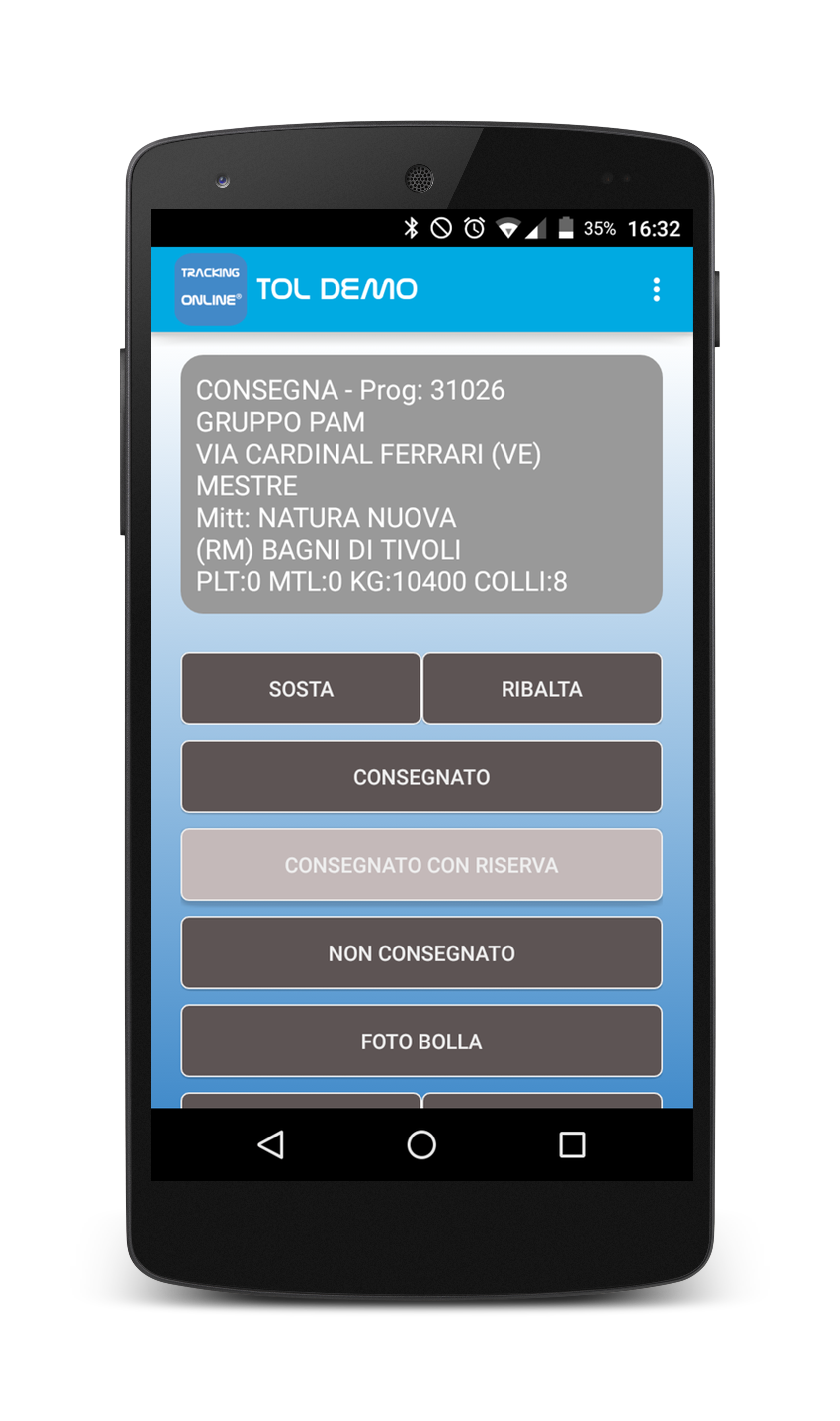 È possibile scattare le foto dell'eventuale consegna con riserva, la foto della bolla di consegna, la foto dell'eventuale sinistro e la foto dello scontrino, a rifornimento eseguito